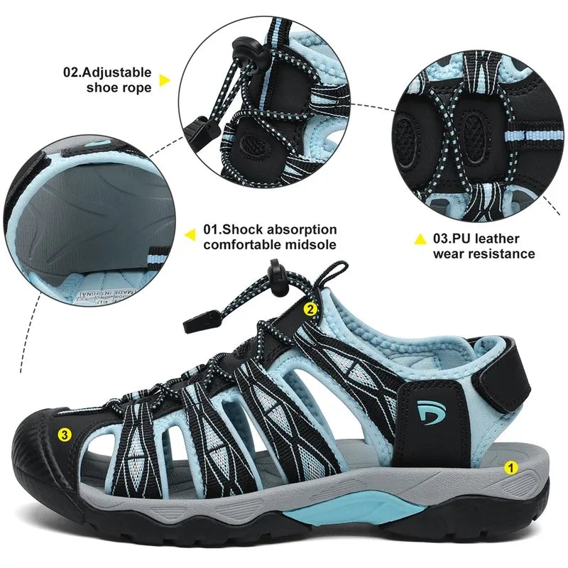 Equip yourself with sandals designed for your hiking expeditions. With sturdy rubber soles for grip and reduced foot pressure, they ensure comfort on rugged trails.