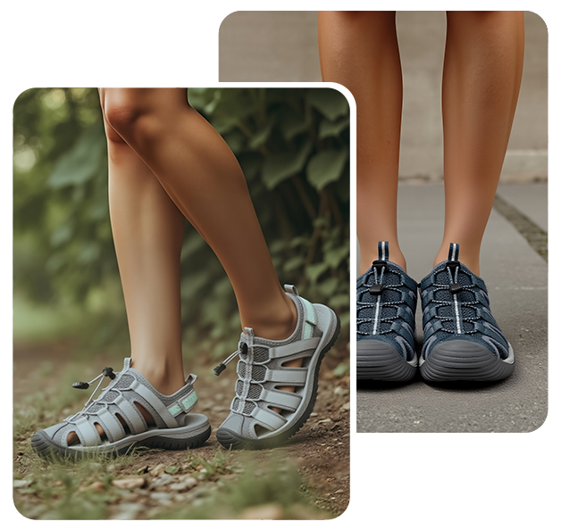 Equip yourself with sandals designed for your hiking expeditions. With sturdy rubber soles for grip and reduced foot pressure, they ensure comfort on rugged trails.